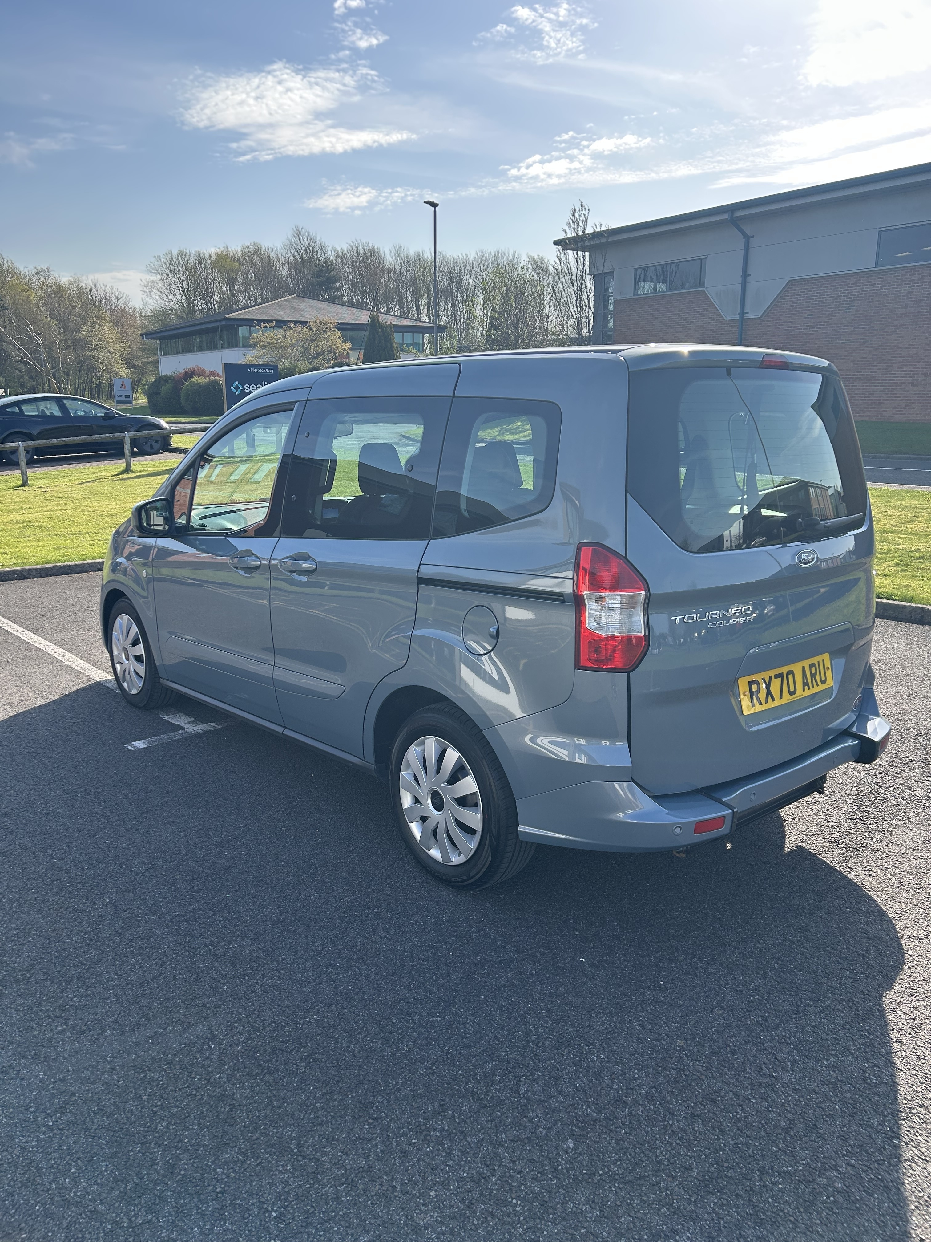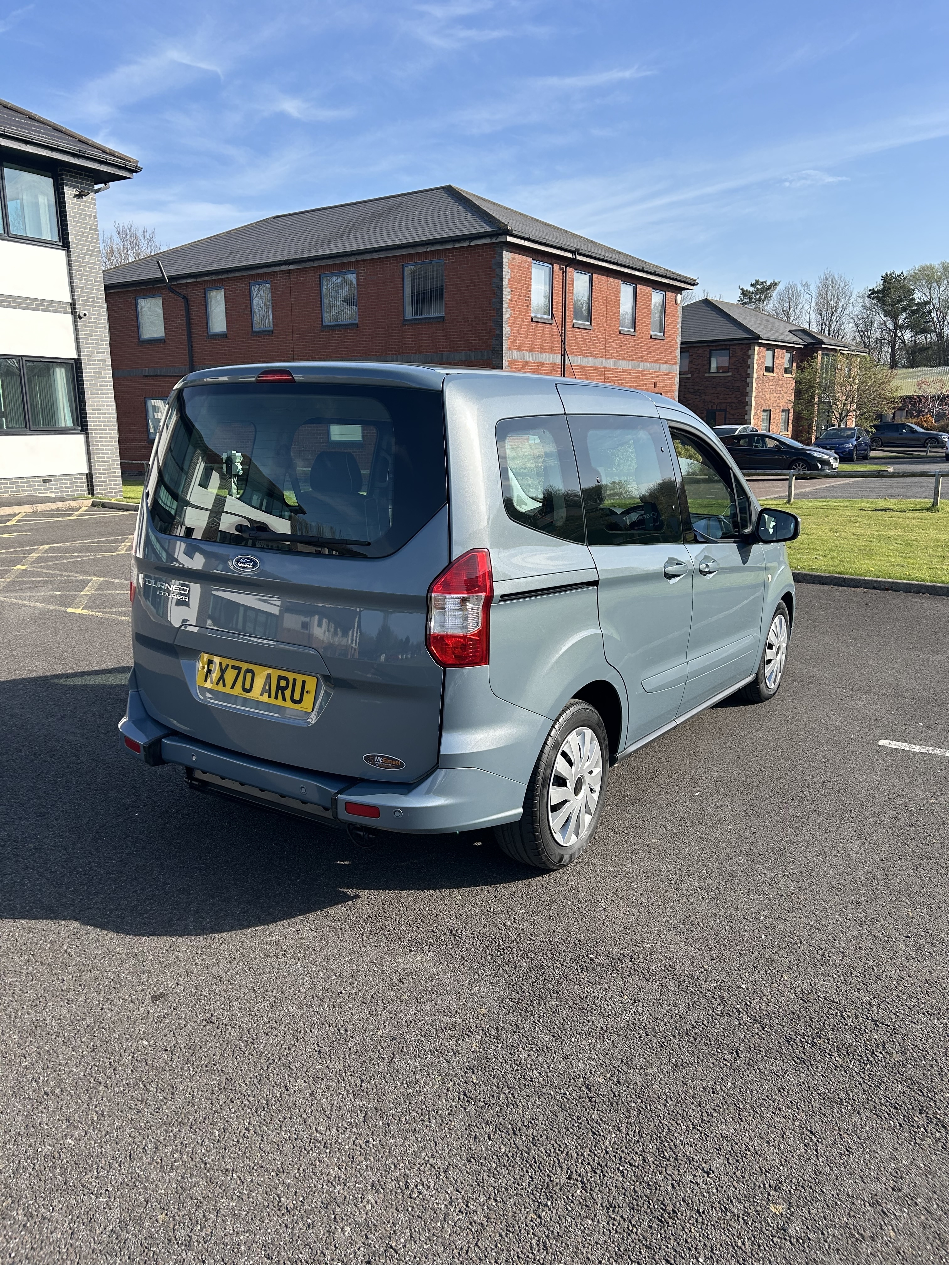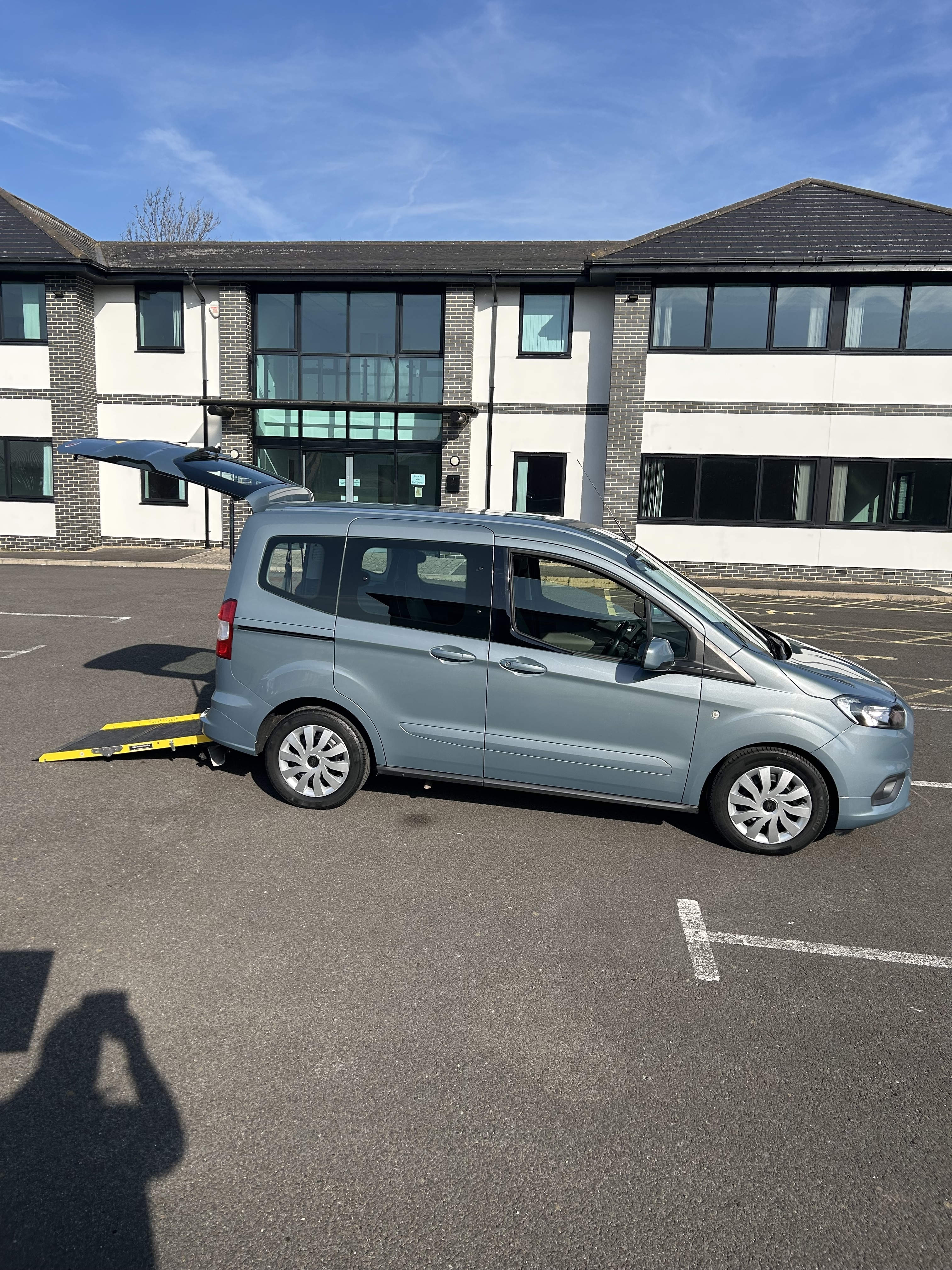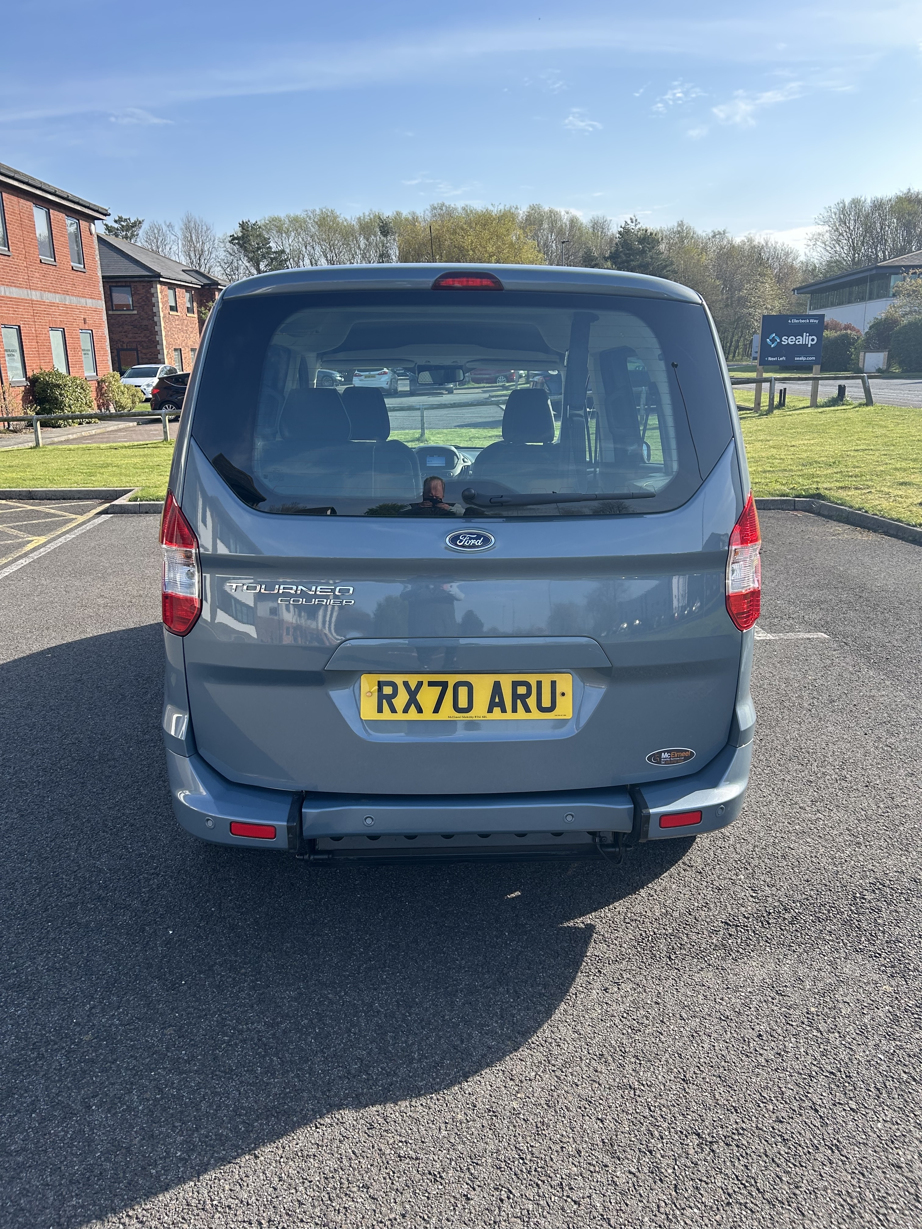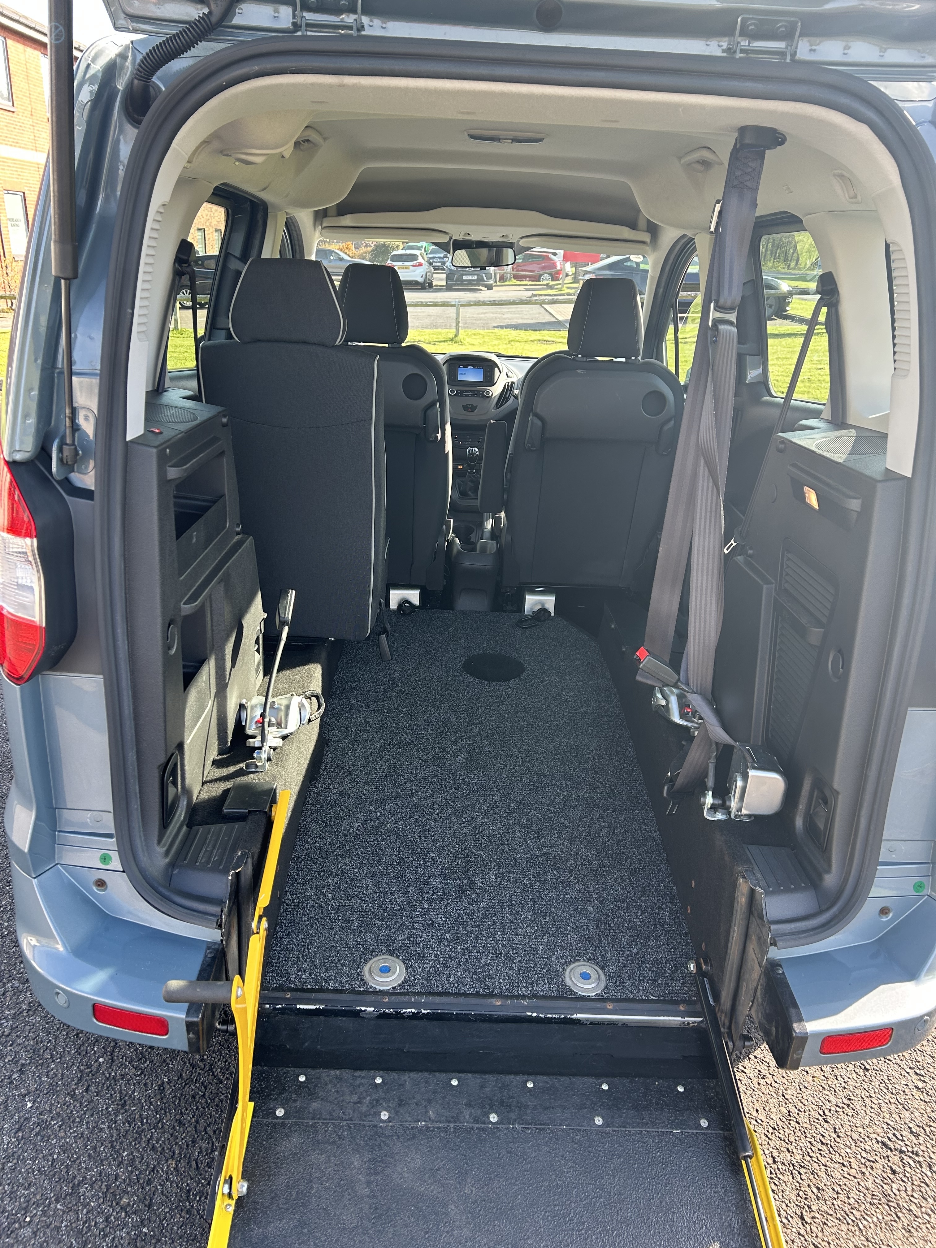 Explore Mobility Vehicles are proud to present this Ford Tourneo Courier, converted by McElmeel Mobility. Wheelchair or scooter entry is gained by the rear ramp aided by electric belts for quick and easy boarding. Once on board the driving experience is enhanced by the 1.5 TDCi engine which produces 100 BHP with the added convenience of air conditioning, hands free telephone connection quick clear windscreen and electric windows. With three seats plus the wheelchair user this is a truly versatile solution to your mobility needs. This vehicle is supplied with an MOT until December 2026, full service history and the benefit of our 12 month Warrantywise warranty which includes roadside assistance. Free UK mainland delivery, please call for an appointment.