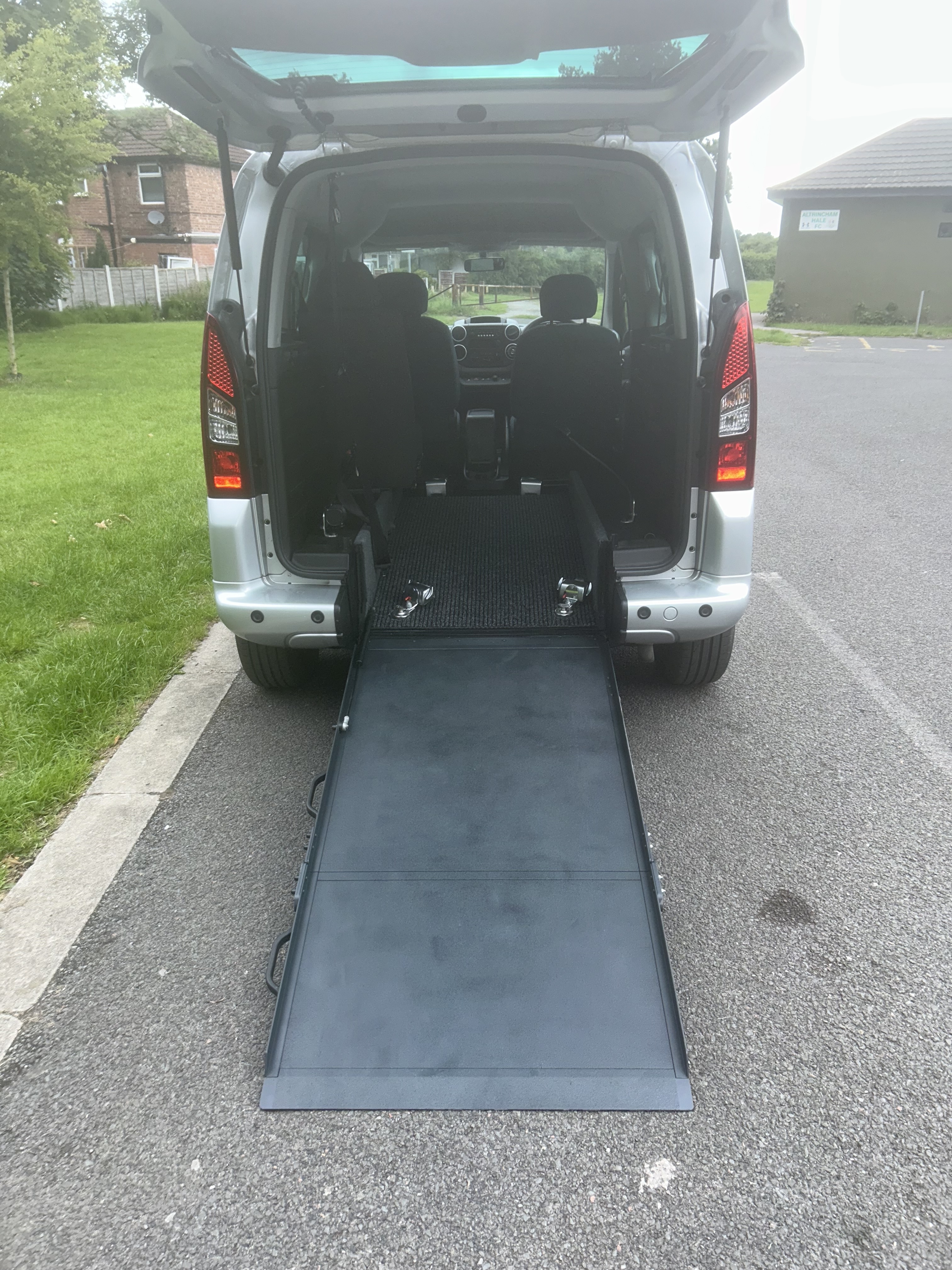 Our facelift model Citroen Berlingo automatic was converted McElmeel Mobility and is finished in silver. Wheelchair or scooter entry is gained by the rear ramp aided by electric belts for quick and easy boarding. Once on board the driving experience is enhanced by the 1.6 HDi diesel engine with the added convenience of air conditioning, power mirrors, electric windows along with Bluetooth. With three seats plus the wheelchair user this vehicle offers high quality transport for up to four people. This low mileage vehicle is supplied with an MOT until December 2026, full service history and the benefit of our 12 month Warrantywise warranty and AA roadside assistance. Free UK mainland delivery, please call for an appointment.